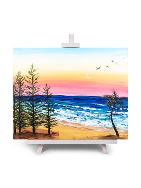 Laze away a summer’s day. Smell the scent of saltwater and pine and settle into a soft sunset. Paint your own memories and experiences on the coast into this dreamy scene.