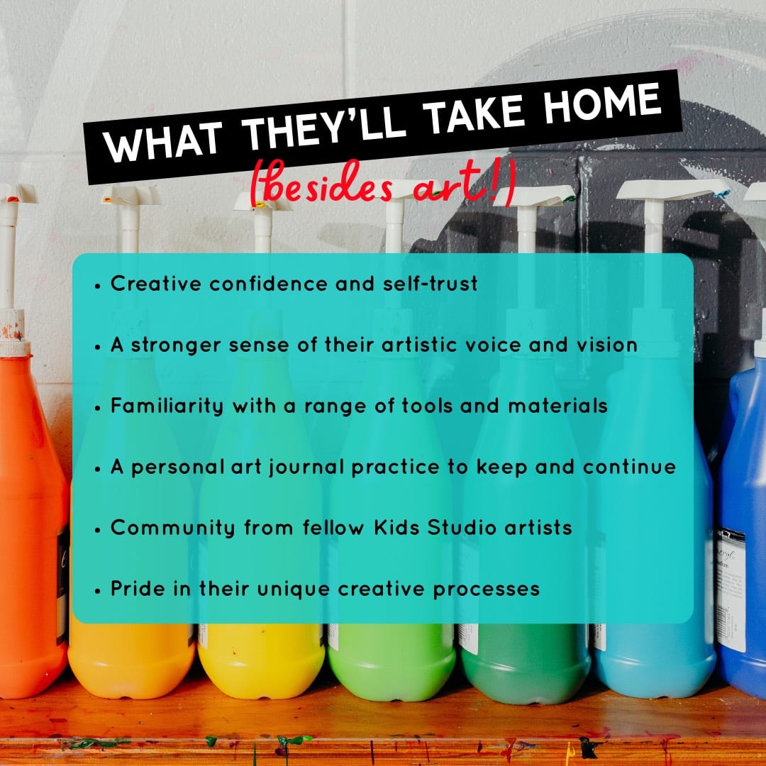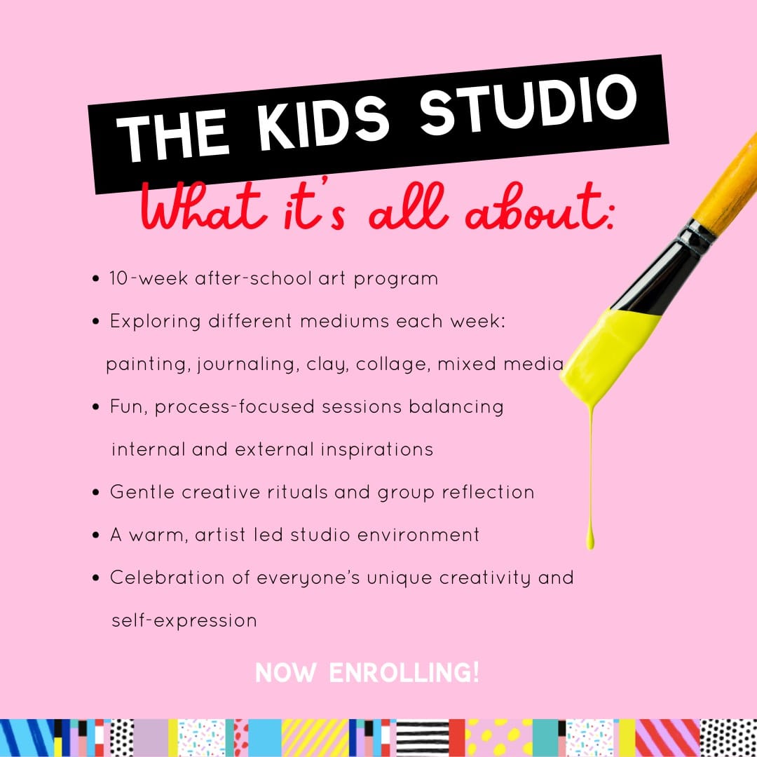 The Kids Studio is a joyful after-school art class for kids aged 7 to 11. The purpose of The Kids Studio is to make art, explore creativity, empower creative confidence, and express ourselves in a relaxed and welcoming environment.